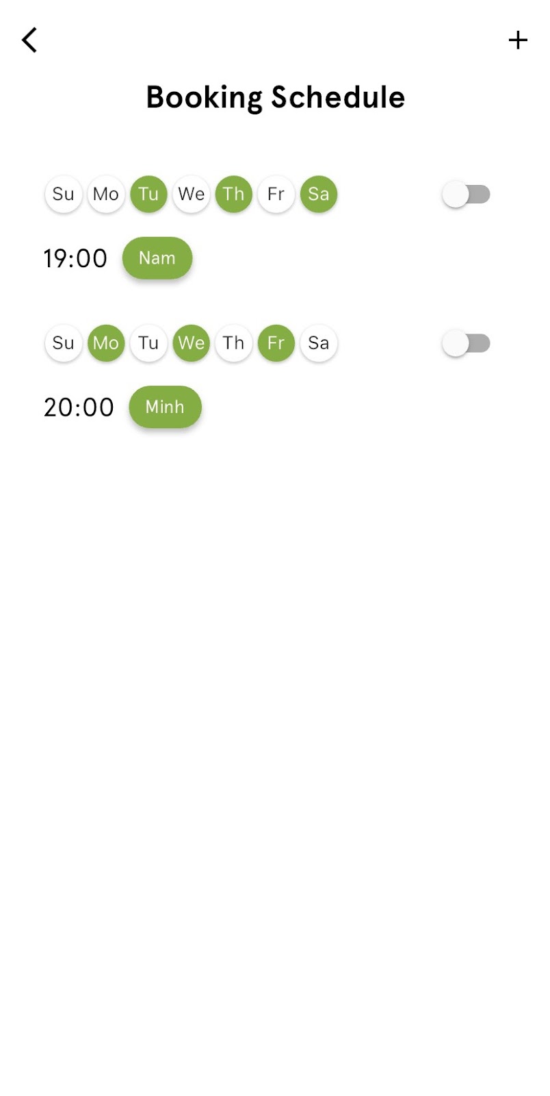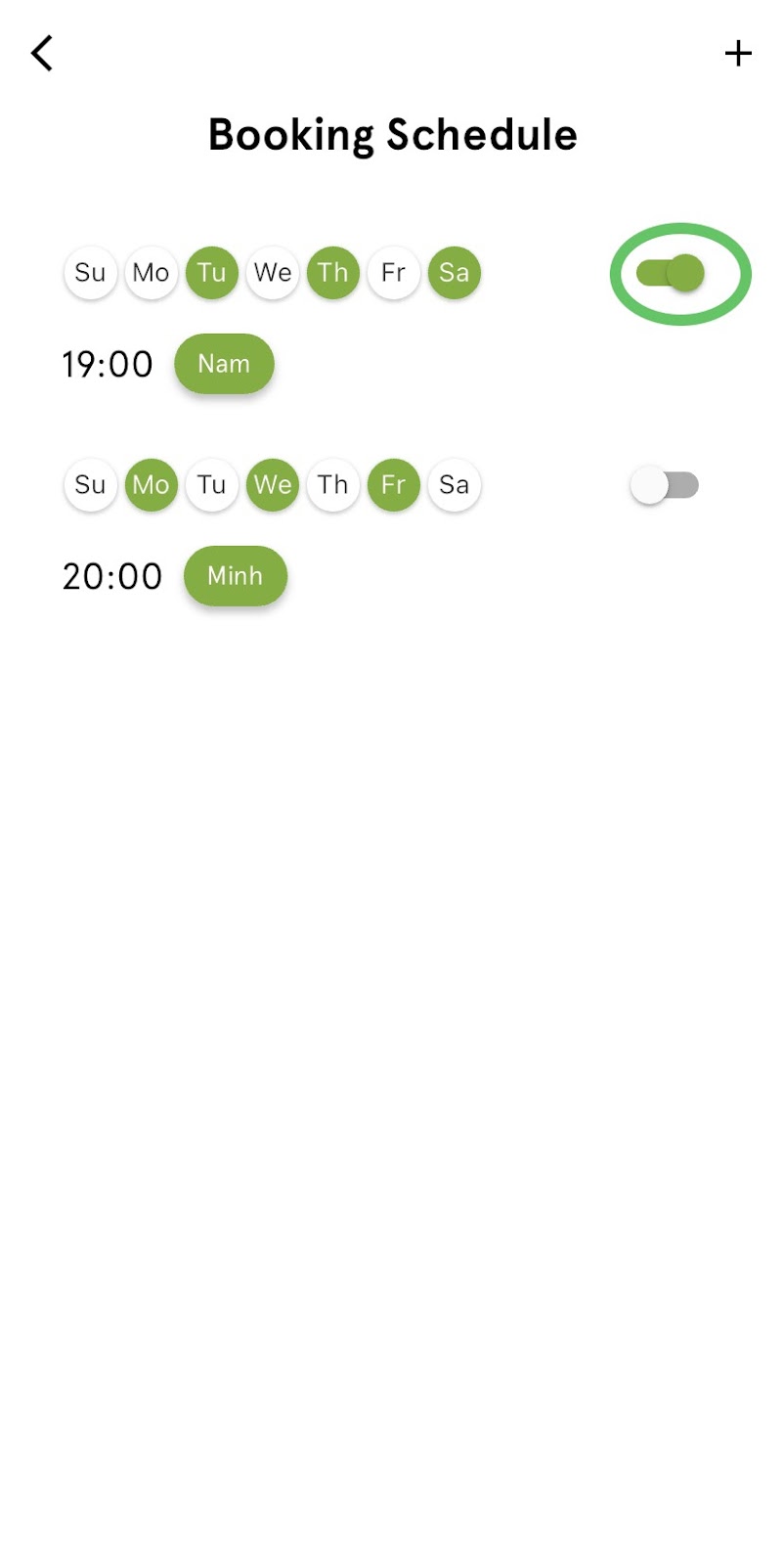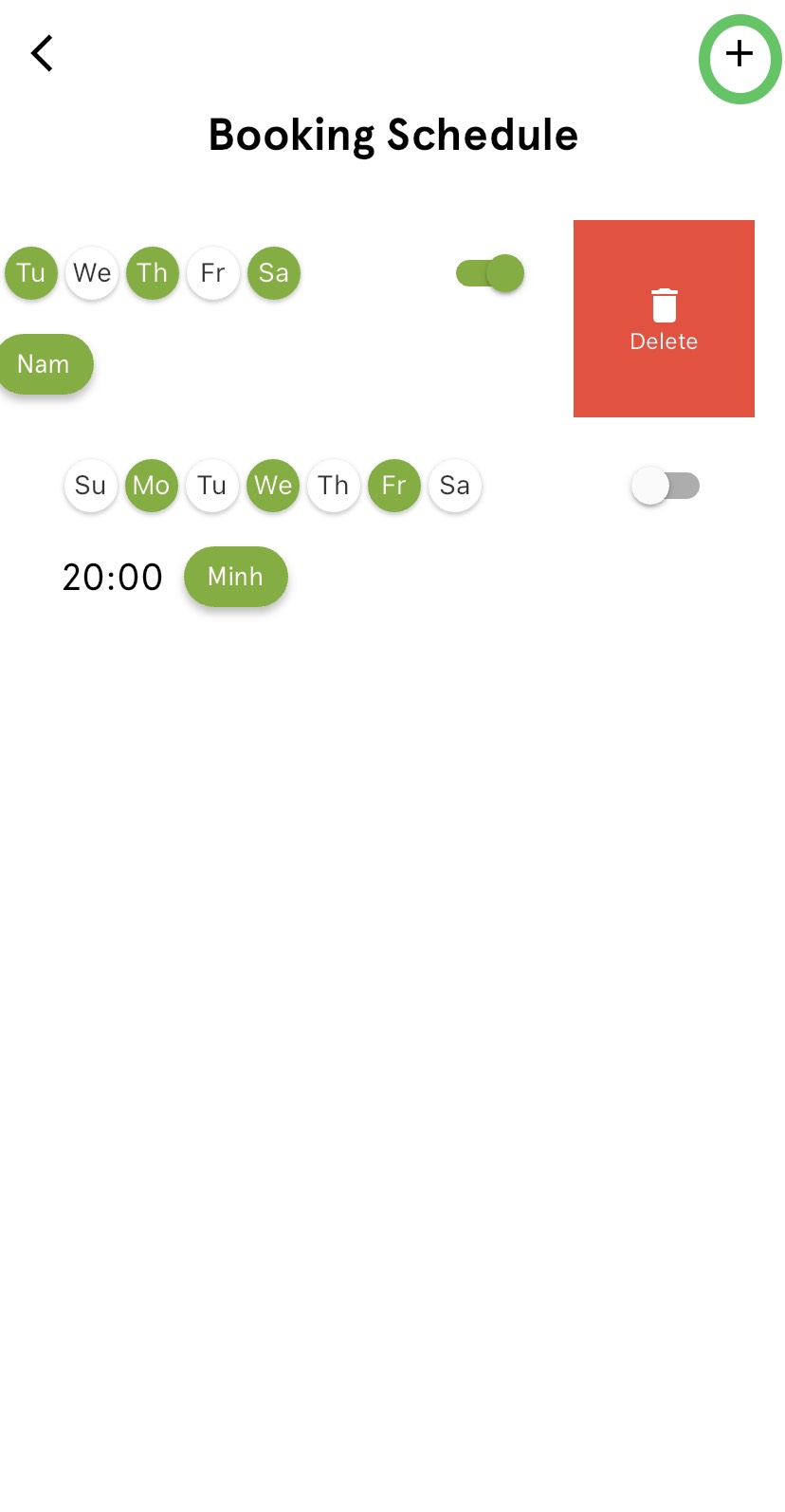 Phụ huynh có thể thêm hoặc xóa lịch booking bằng các thao tác đơn giản.